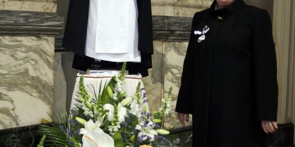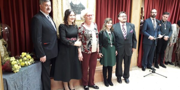 Carmen Tello Prades, nuestra clavariesa 2020, asistió al nombramiento de Macu Atienza como Honorable Clavariesa 2020. En este acto, que ya recogimos en nuestra web, posó muy elegante junto a la imagen de Sant Vicent del Mocadoret. En esta otra fotografía aparece también nuestro Presidente Manuel Ferri. Las fotografías se tomaron en el Salón de Cristal …