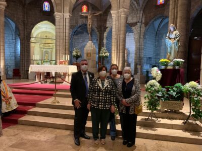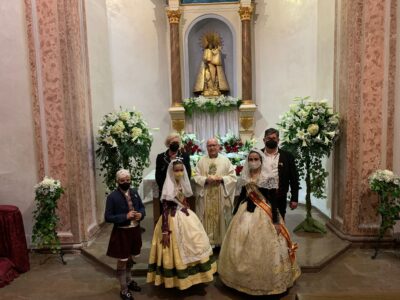 La Falla Plaça Lope de Vega ha organisat una Ofrena a la Mare de Deu dels Desamparats en el dia de la seua festa, el dumenge 9 de maig. Ha convidat a l’Altar del Mocadoret a participar en l’acte. La nostra Clavariesa 2020, Carmen Tello, acompanayada del Vicepresident, José Vicente Salas, i atres membres de l’Associació, ha assistit a la missa i a la posterior Ofrena.