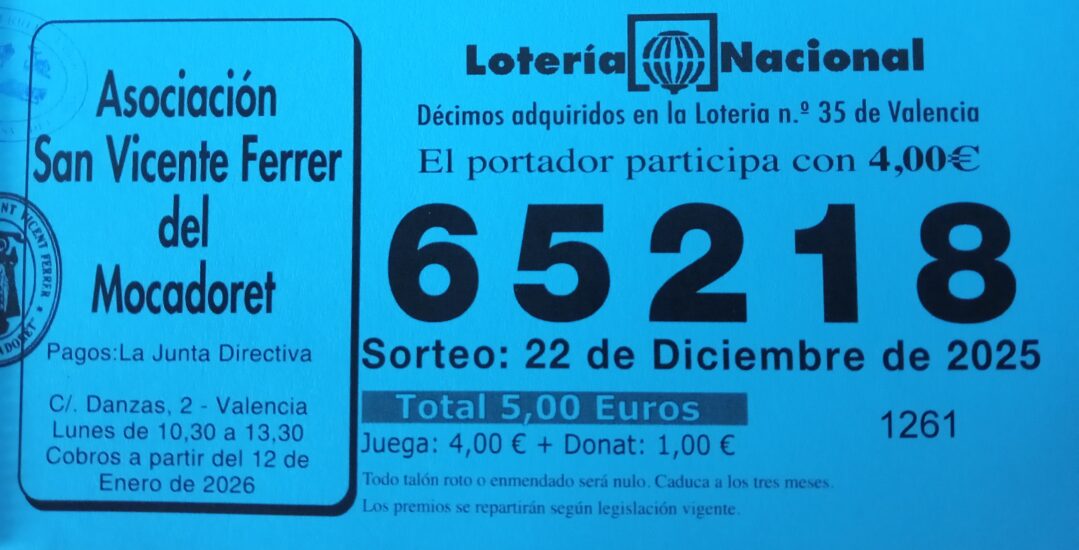 Los lunes a partir del 13 de octubre vendemos la lotería del Altar en la llar de Danzas, 2 bajo.